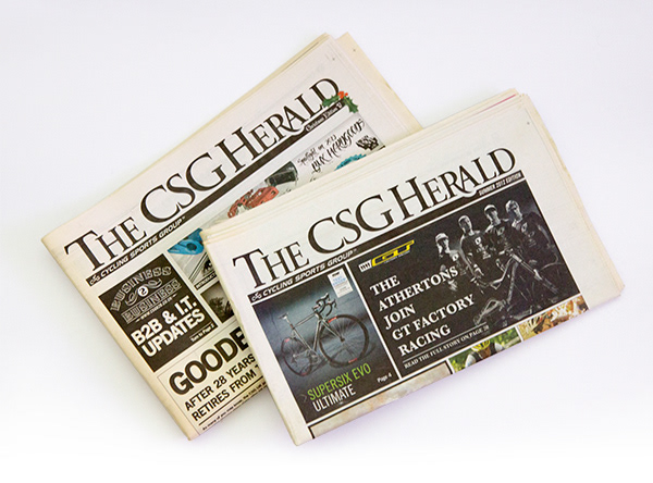 CSG Herald was a newspaper series which was created and printed quarterly for bicycle dealers and consumers. Although editorial was sometimes a pain collecting, the newspaper itself was pretty fun to make, i had free reign to design and create...